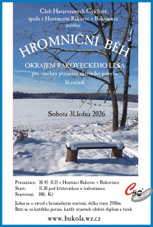 Hromniční běh okrajem rakoveckého lesa je pak připravený v Bukovince. Čeká vás jen okruh v délce 2,9 km a samozřejmě to také bude místy po ledě a sněhu.