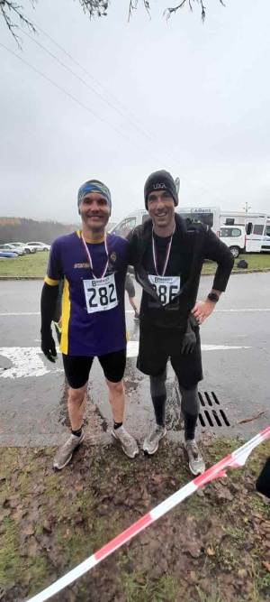 Od rána mrholilo, v noci i pršelo a pak v průběhu závodu už lilo. Z normálně náročné trasy po polních cestách se stalo bahnité kluziště, kde se nedalo vůbec běžet. Hodně běžců popadalo, někteří i víckrát. Já jen fotil, a přesto jsem sebou třikrát třískl a zabořil foťák do bahna. Takže velká poklona všem, co závod dokončili.